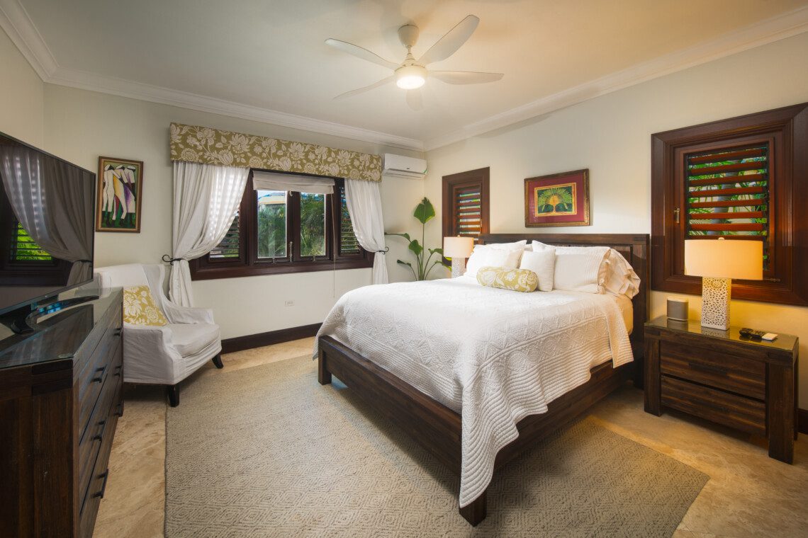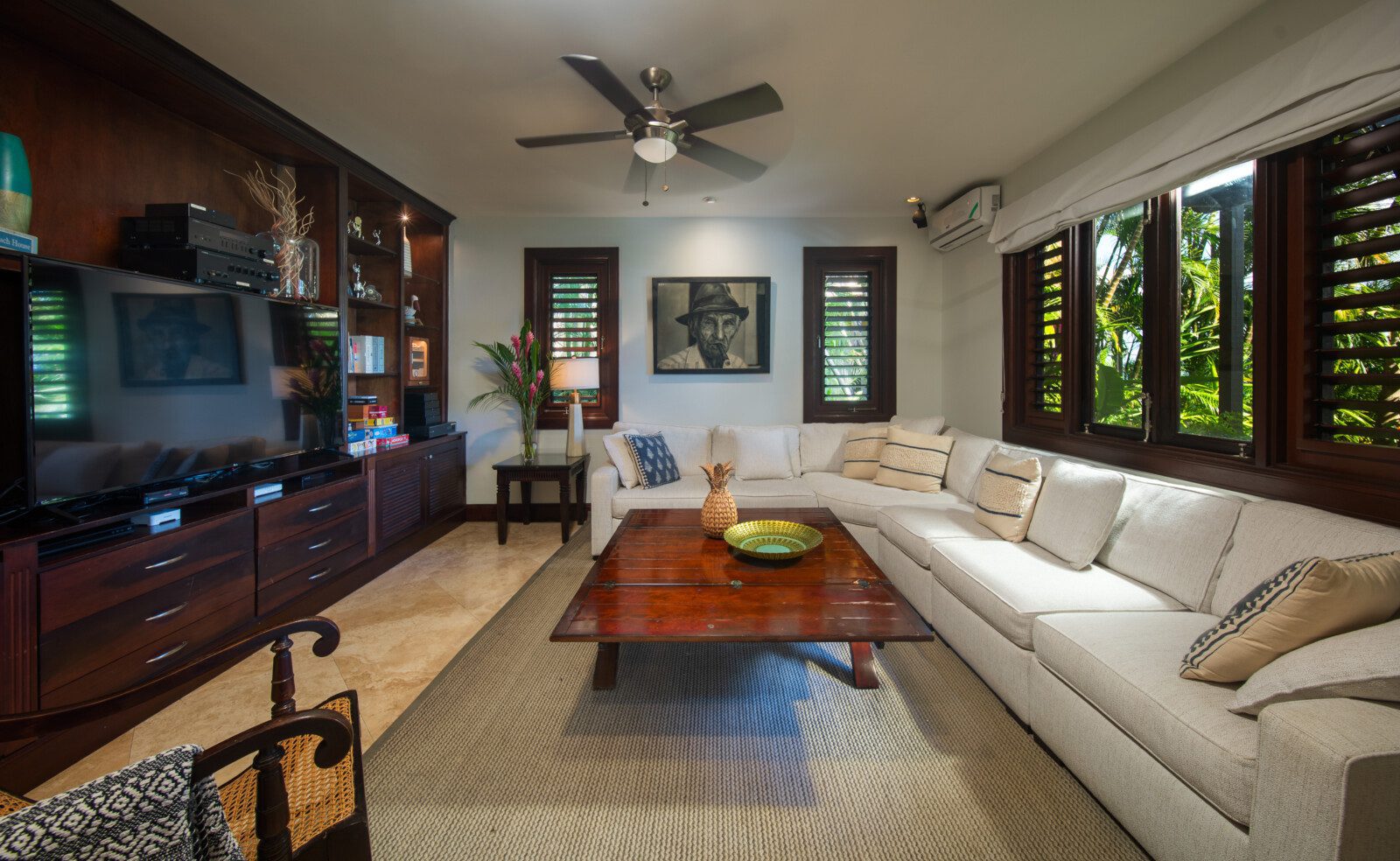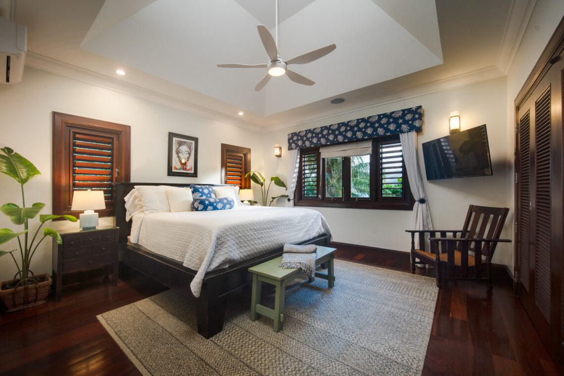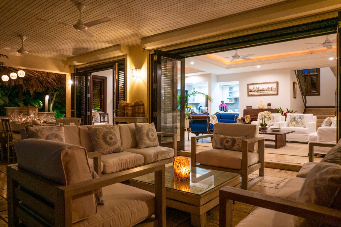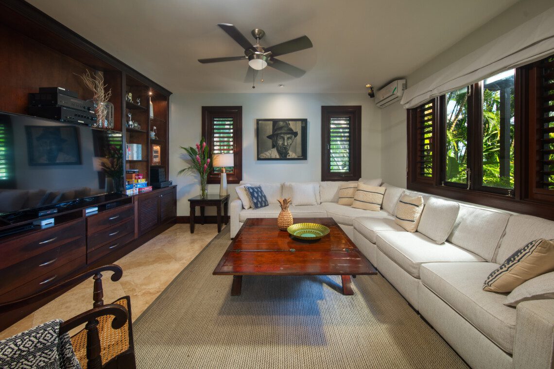 The family room is air-conditioned with a 47’ flat screen television and BOSE surround sound. The restaurant-quality kitchen provides extraordinary meals. The villa comes with a full-time cook, a personal butler, a gardener and a housekeeper, making the holiday a truly memorable one. The private beach cabana provides a relaxing experience, as does the newly opened outdoor tiki bar next to the pool.