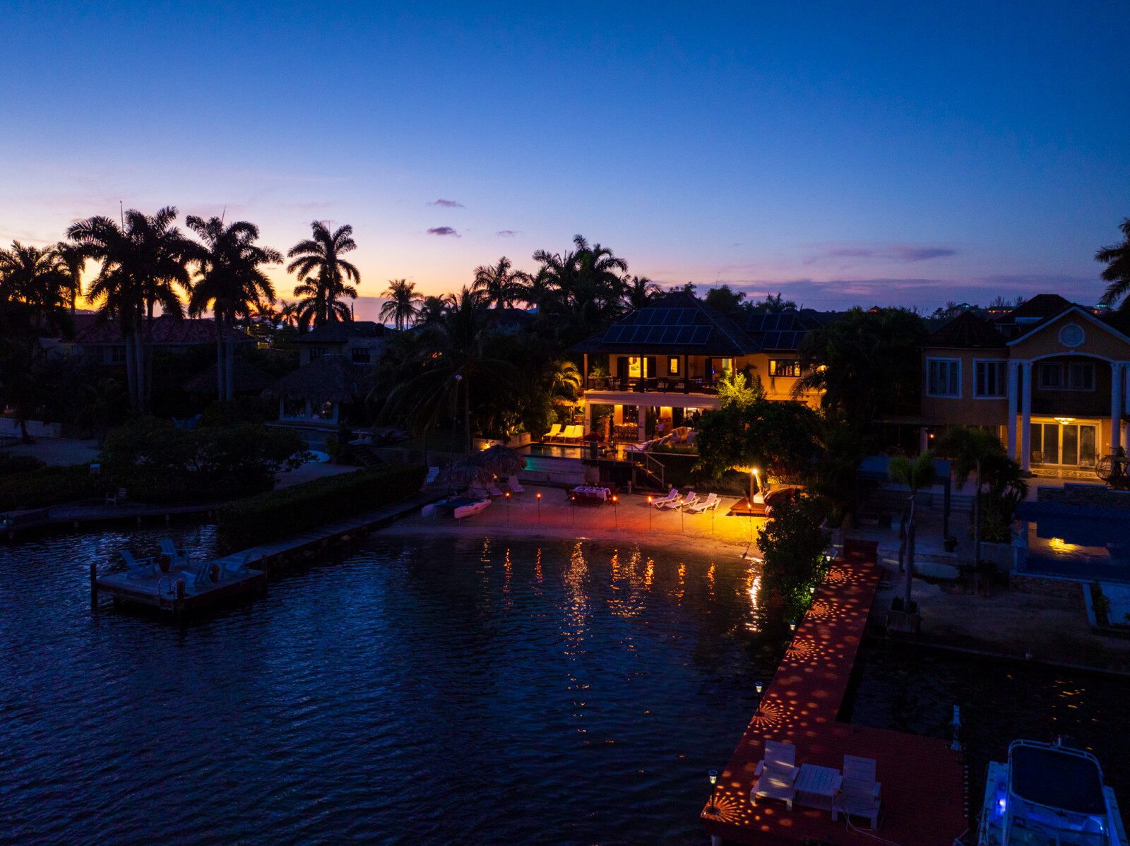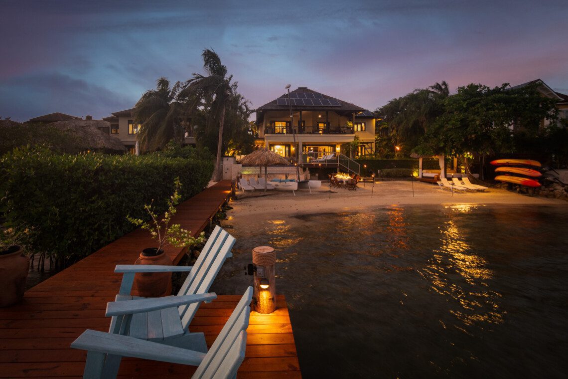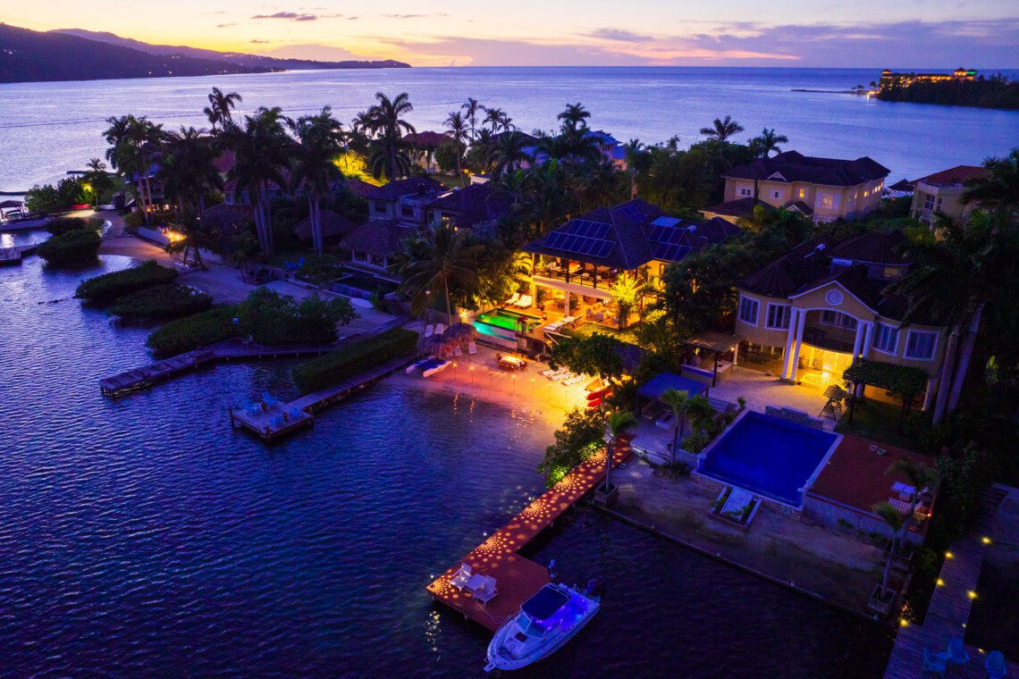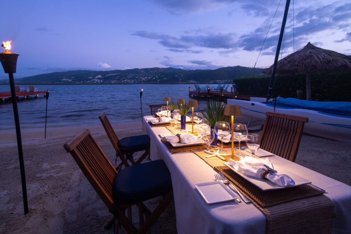 The master suite is the most luxuriant, with a classy marble tiled bathroom, 8 feet wide shower, a skylight, a spa-like tub and a wall-mounted flat-screen television for the most relaxing soak. The spacious patio is connected to the master suite. This allows for a glimpse of a gorgeous sunrise early in the morning, or for an ideal evening view of the birds in Montego Bay’s Marine Park lagoon, with the city’s lights in the background. A romantic candlelight dinner on the beach, with tiki torches all around, and a unique ocean fire-pit for the grilled meal will present a memorable experience.