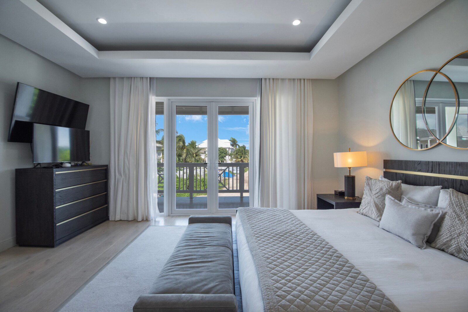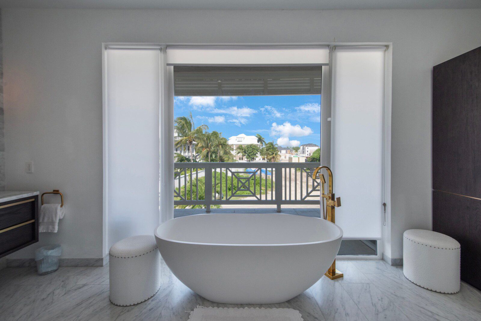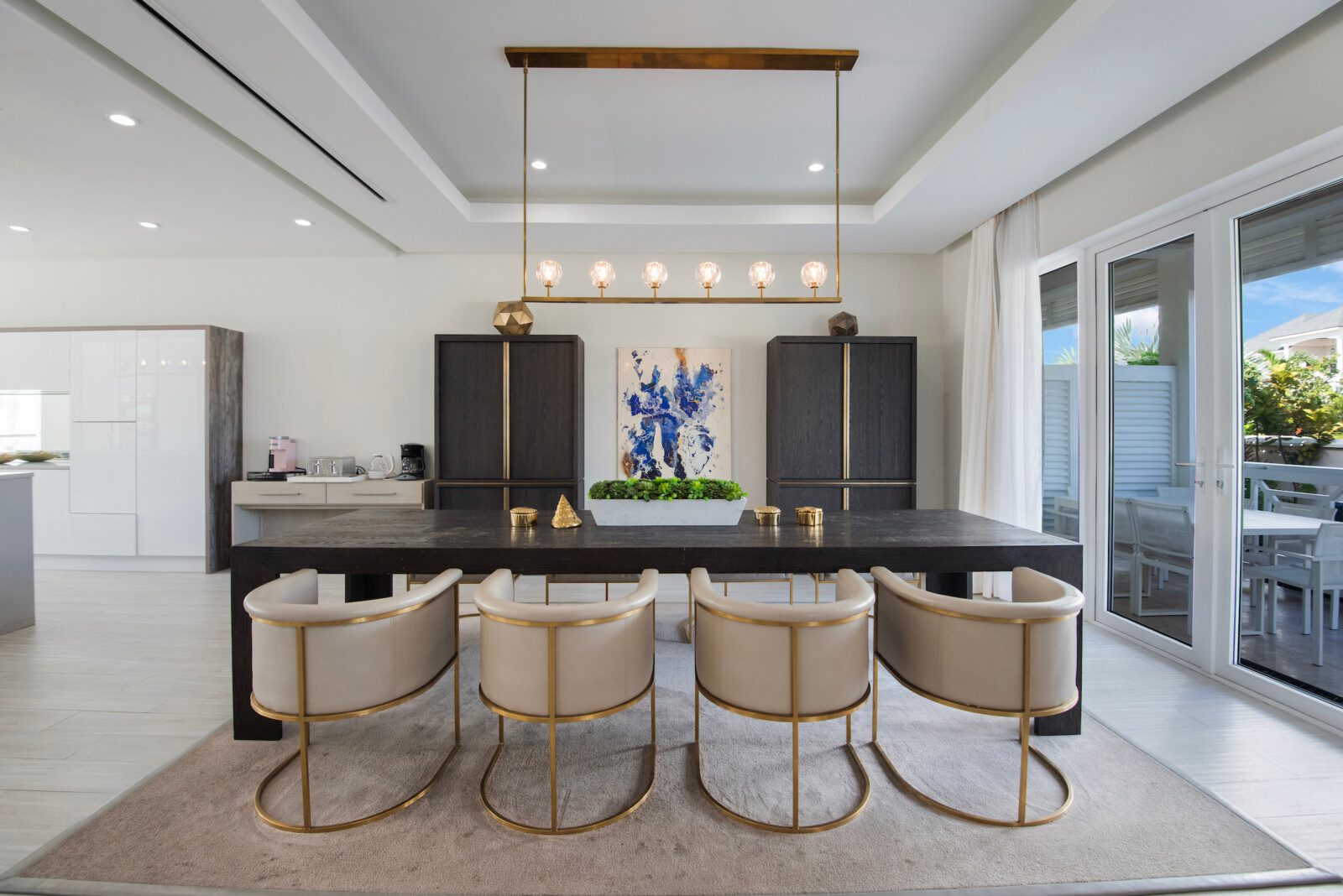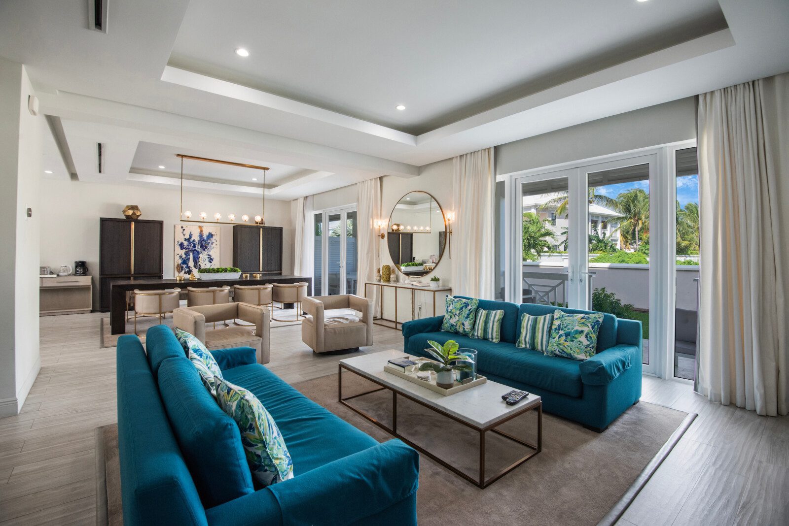 60 STEPS TO BEACH AND POOL! DREAMTIME, NASSAU- is a stunning 5,000 sq. ft 3 story unit – exclusively fitted out with Restoration Hardware furniture and vanities, porcelain tiles, wine cellar, Bosch and Miele appliances, large balconies and patio space. Just a 30 second walk to the members beach club and restaurant. This villa comprises two townhomes combined into one stunning large vacation home. This was the original Palm Cay model home for One Marina – Nassau, Bahamas
