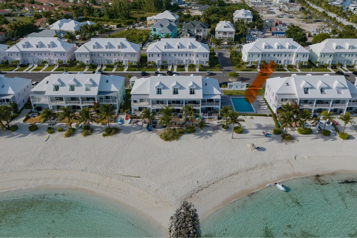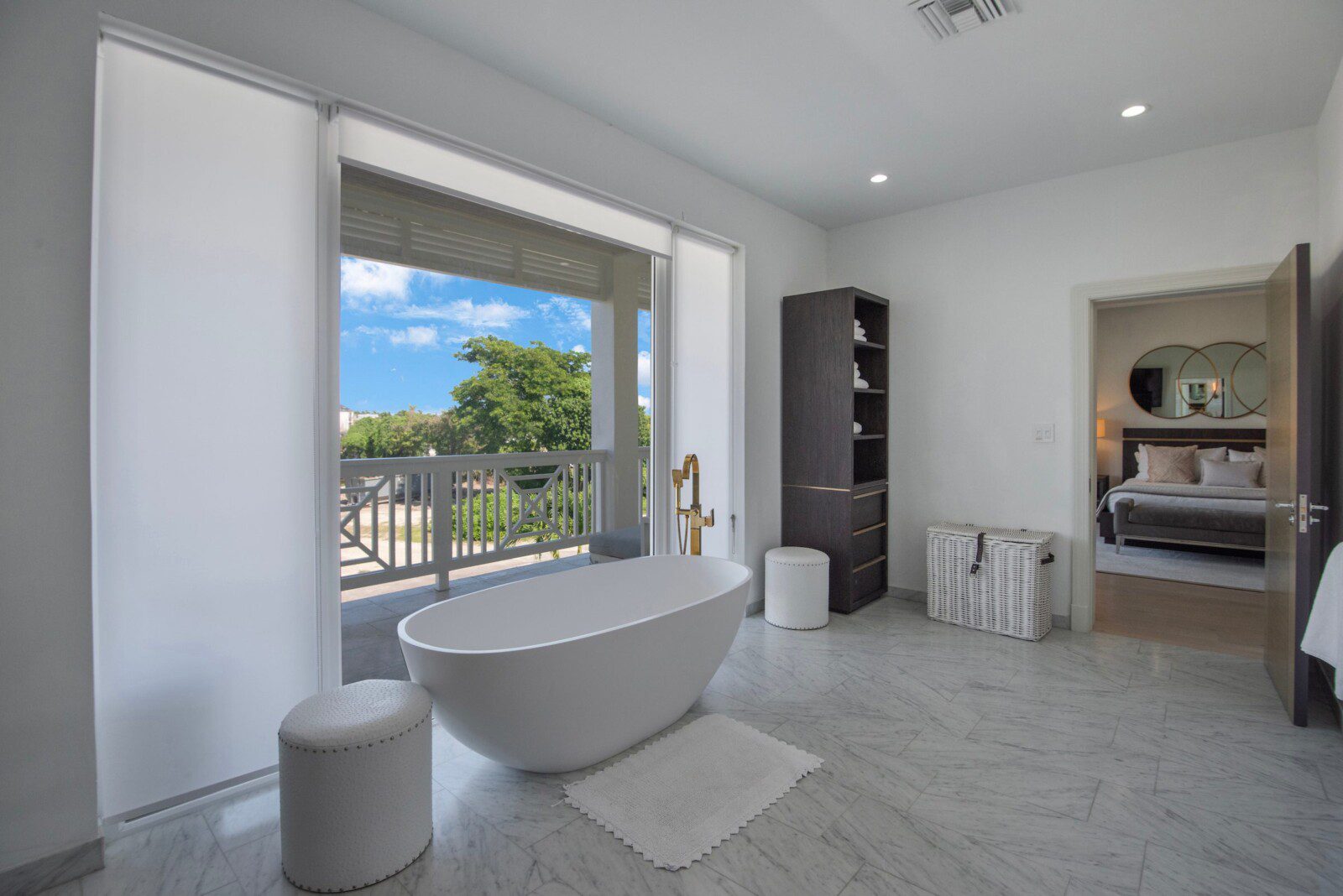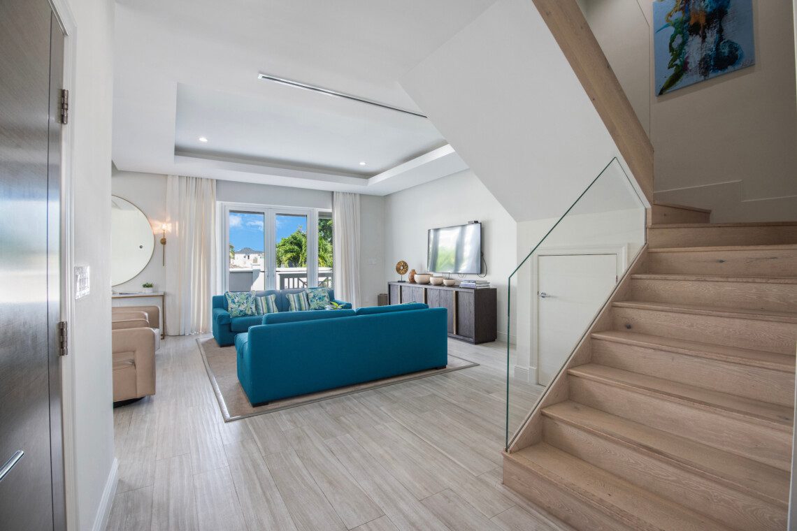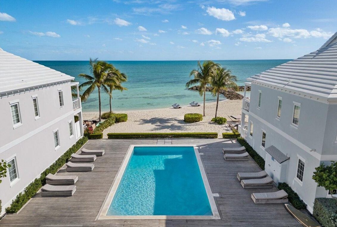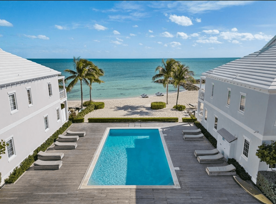 60 STEPS TO BEACH AND POOL! DREAMTIME, NASSAU- is a stunning 5,000 sq. ft 3 story unit – exclusively fitted out with Restoration Hardware furniture and vanities, porcelain tiles, wine cellar, Bosch and Miele appliances, large balconies and patio space. Just a 30 second walk to the members beach club and restaurant. This villa comprises two townhomes combined into one stunning large vacation home. This was the original Palm Cay model home for One Marina – Nassau, Bahamas