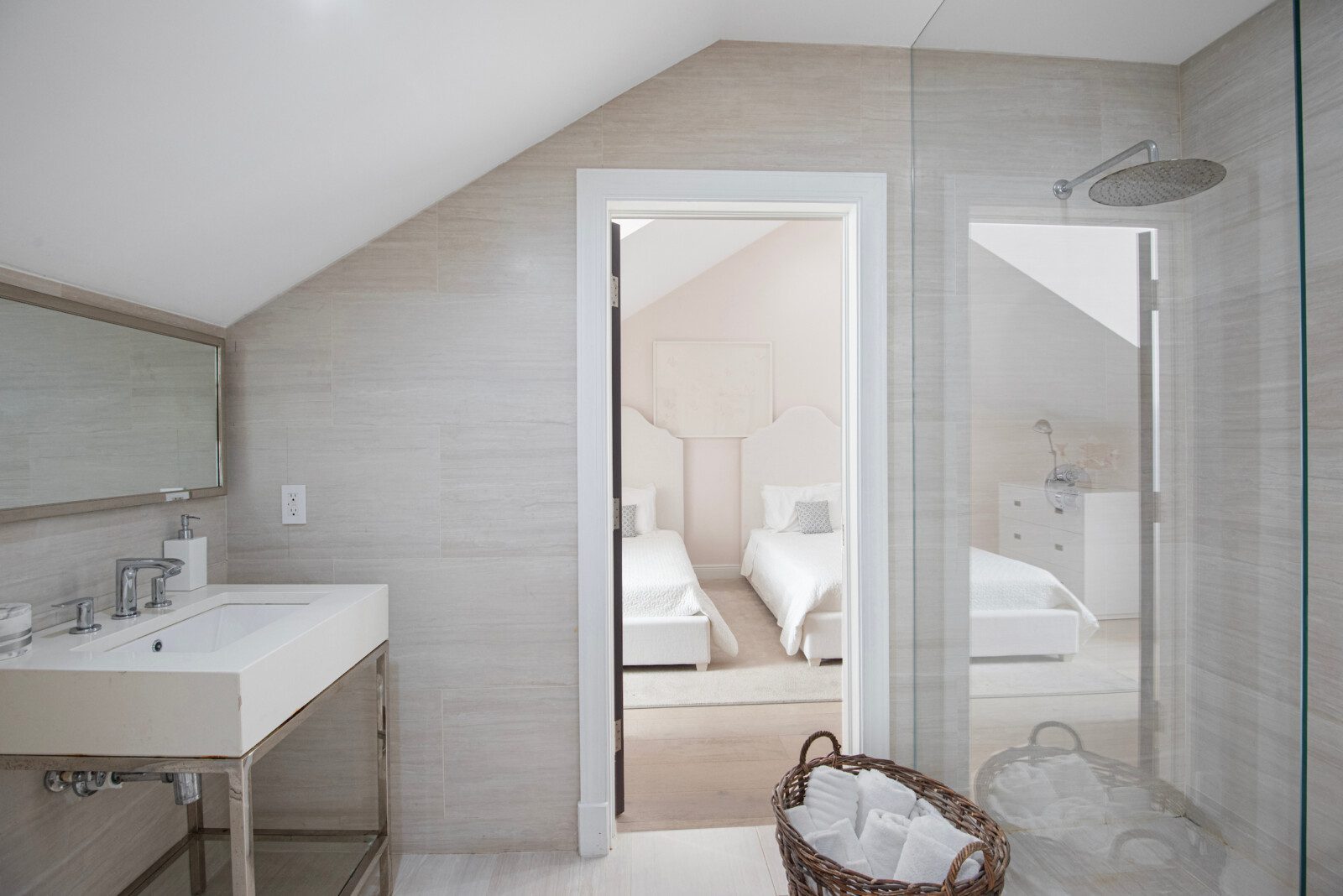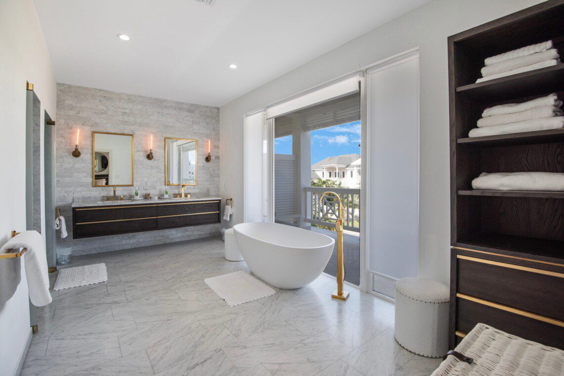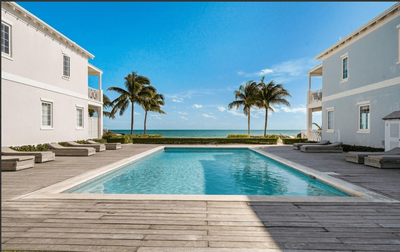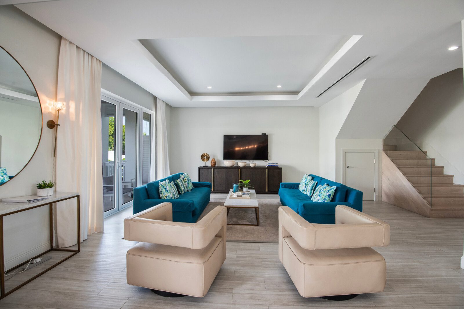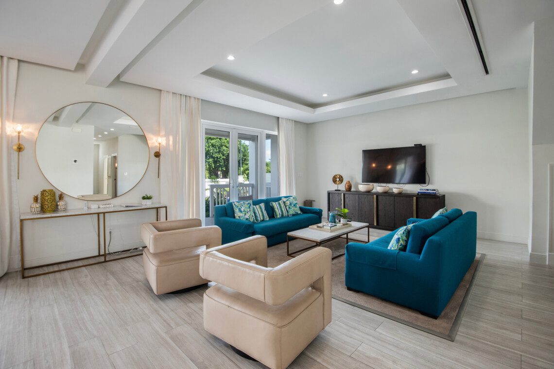 60 STEPS TO BEACH AND POOL! DREAMTIME, NASSAU- is a stunning 5,000 sq. ft 3 story unit – exclusively fitted out with Restoration Hardware furniture and vanities, porcelain tiles, wine cellar, Bosch and Miele appliances, large balconies and patio space. Just a 30 second walk to the members beach club and restaurant. This villa comprises two townhomes combined into one stunning large vacation home. This was the original Palm Cay model home for One Marina – Nassau, Bahamas