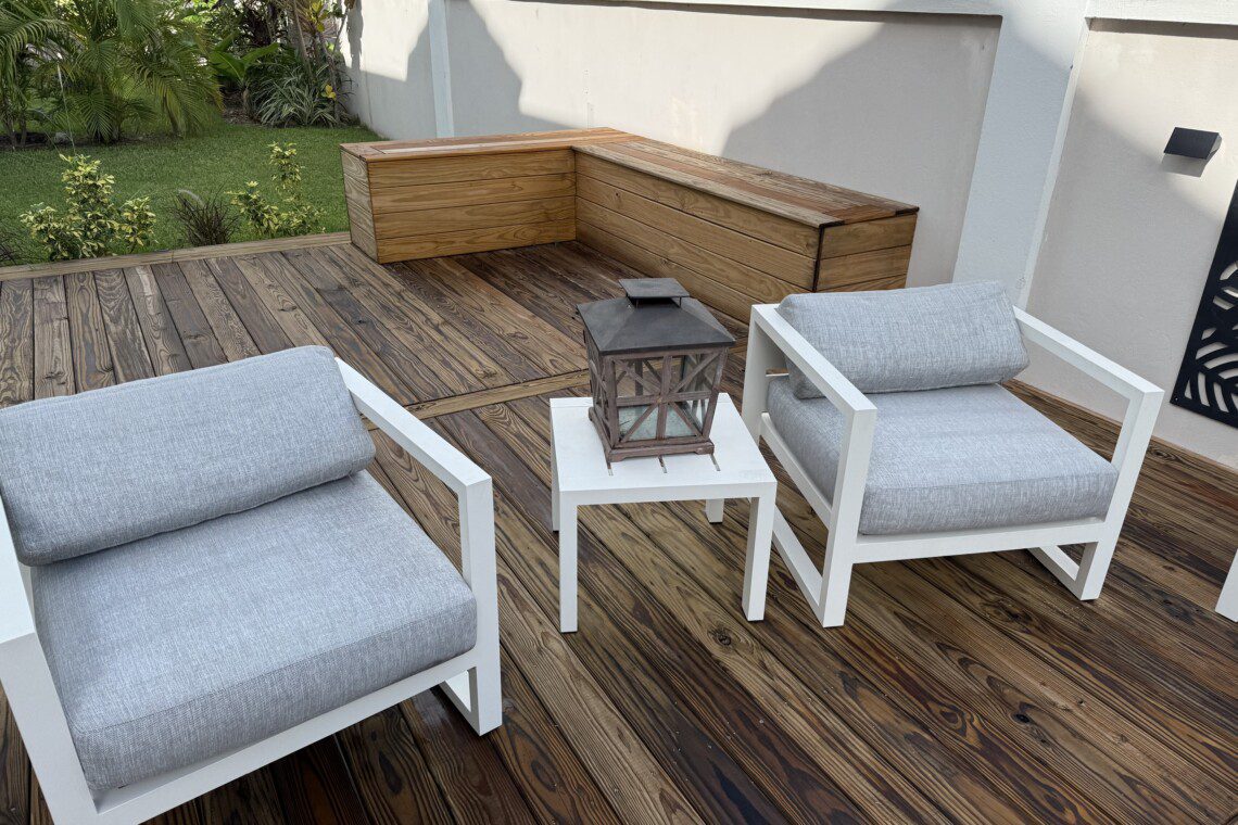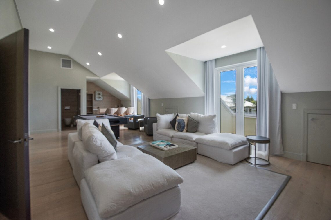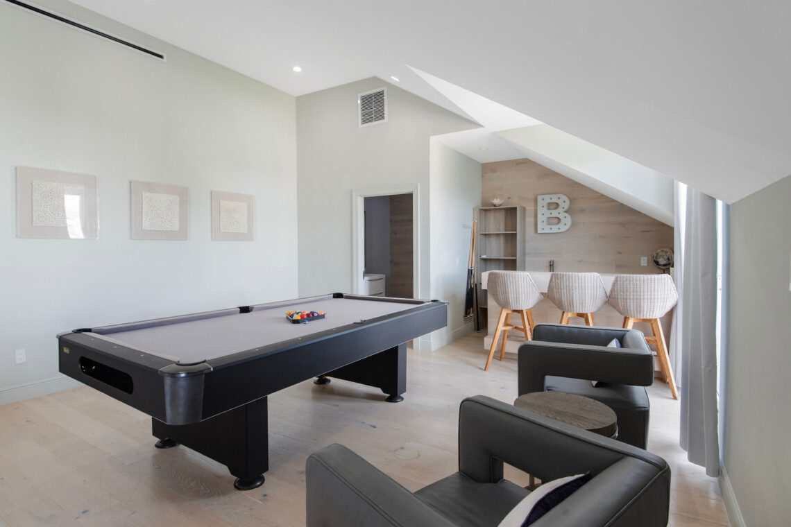 * Two indoor living rooms – one on ground level and upstairs on 3rd floor is an entertainer living area with mini bar, billiard/pool table, Cloud Restoration Sofas and large screen TV and own bathroom