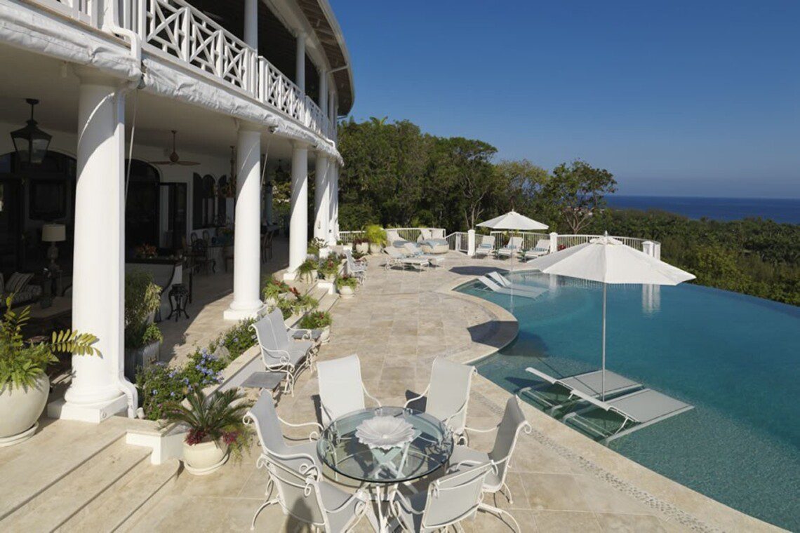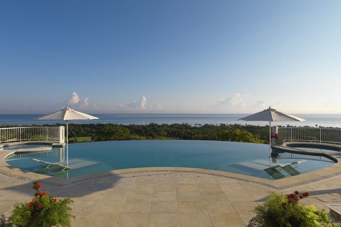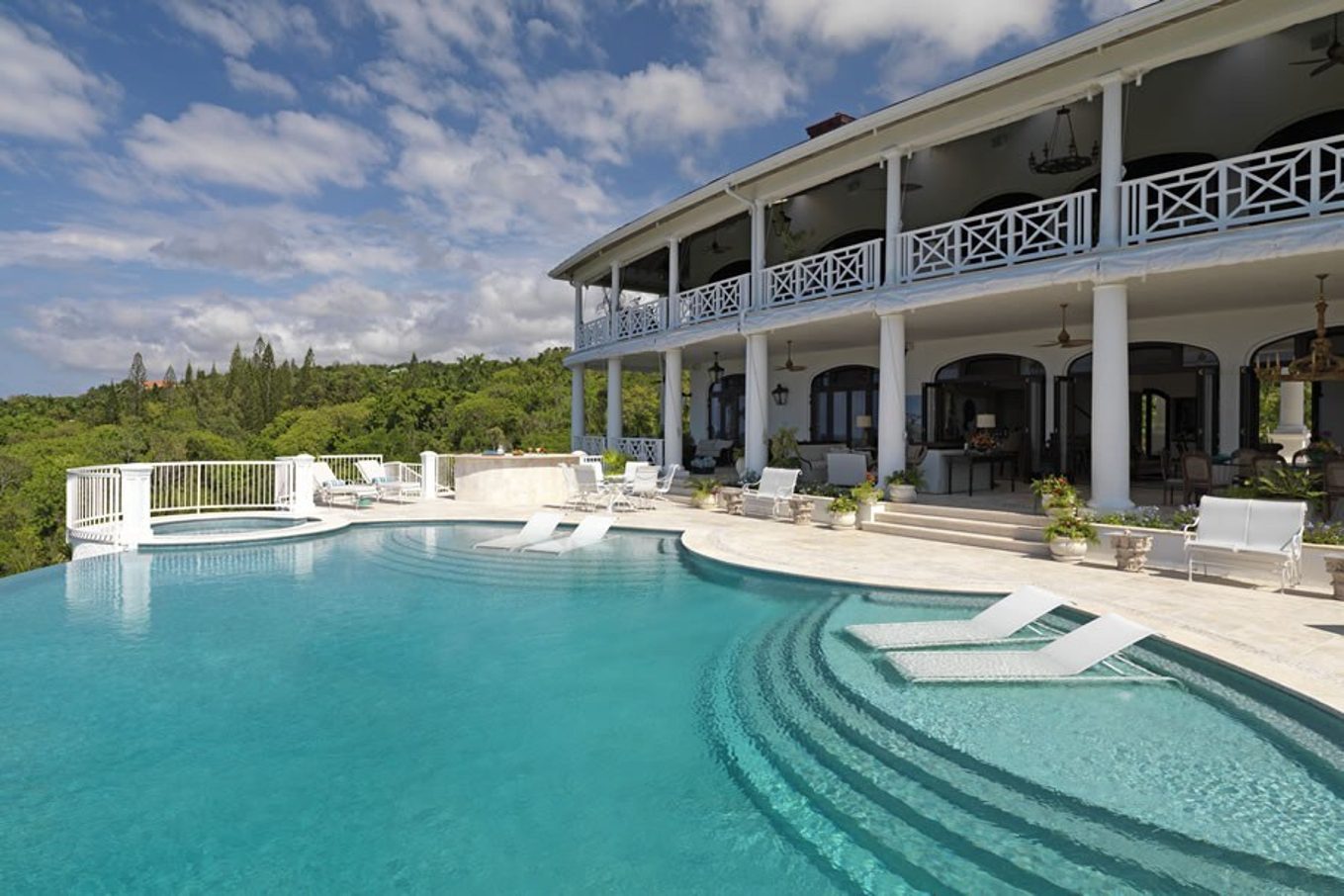 One of the most luxurious villas in Jamaica, with 6+ bedrooms and suites, Flower Hill is an amazing new villa located in Spring Farm. Flower Hill is an 18,000 sq. ft. luxurious villa with panoramic views of the sea, 3 bars, a spa, games room, home theater, fully equipped gym and a magnificent infinity pool with waterfall and Jacuzzi. It has 5 bedrooms, 4 sitting rooms and 14 bathrooms and can accommodate up to 18 persons by turning sitting rooms into bedrooms (ensuite bathrooms with showers) with either pull-out or pull-down beds.