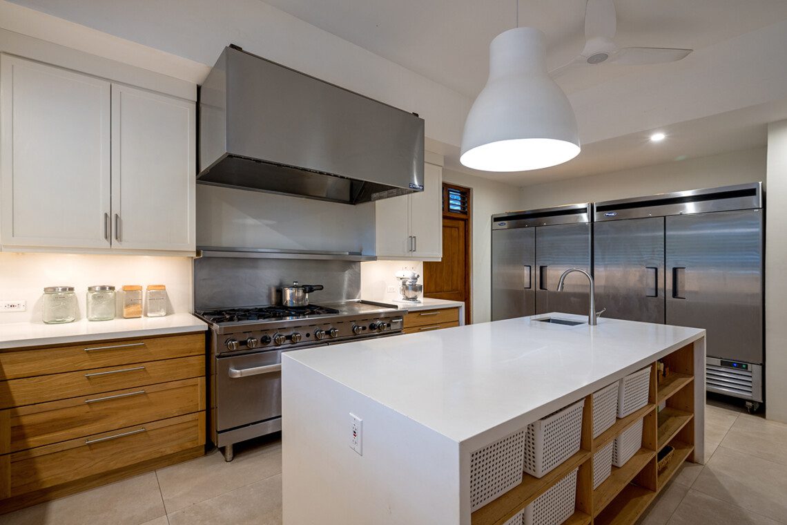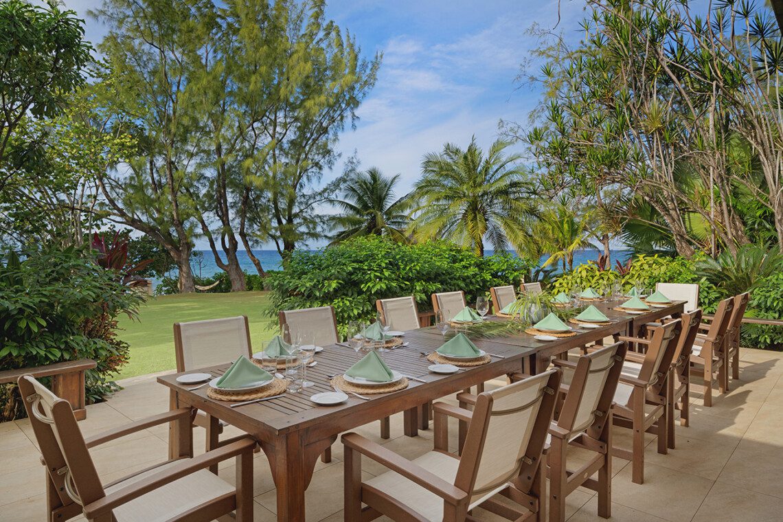 Textures of teak, cedar, Italian tile, and Persian rugs complement the dramatic architecture. With families in mind, seven bedrooms (including two specifically for children) have been thoughtfully designed on individual split levels. The comfortable verandah is complete with a black granite bar, ice maker, and television. Sunset cocktail hours here drift into leisurely long dinners under the stars in any of five open-air dining areas. Inside is the formal dining room with a 100-year-old 12′ mahogany heirloom table. As a special treat, the staff will serve dinner on the very point itself, followed by a seaside bonfire if you wish ~ evenings to treasure and remember.