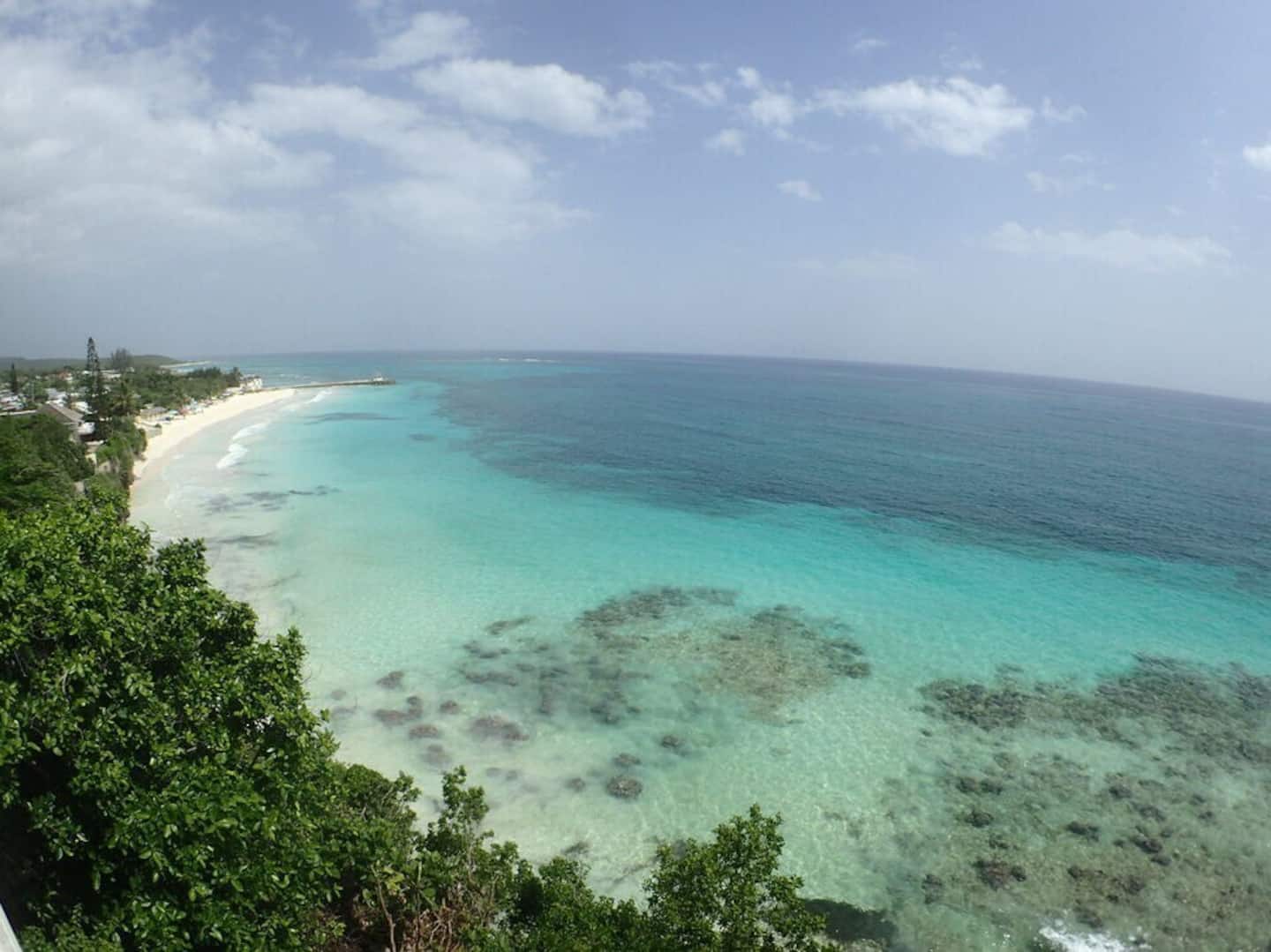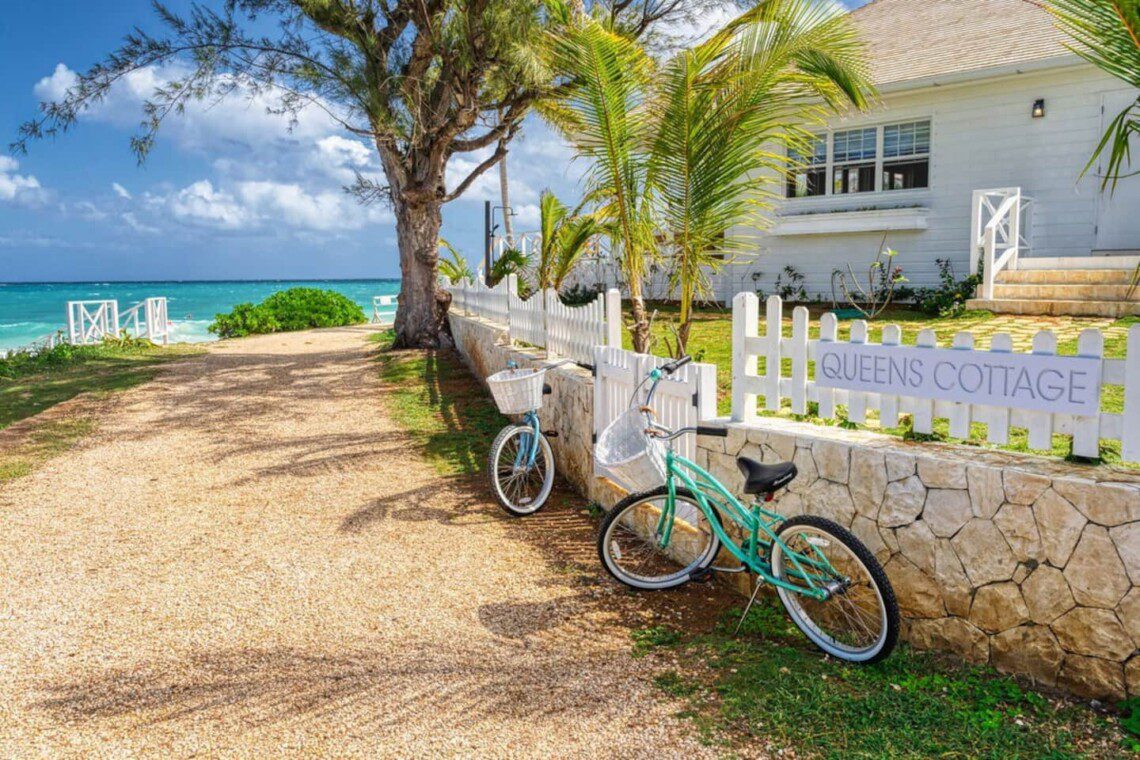 In the main living/dining area, there are three French doors which have amazing ocean views that leads out onto our patio. Queens Cottage a wonderful villa on the beach- less than 3 minutes to the beach on foot and maybe less than 50 feet away from the beach. The beach has a reef and the lifeguards take care of the beach every day, removing seaweed and they rope off areas in the water where there are rocks. Overall Queens Cottage has a great beach.