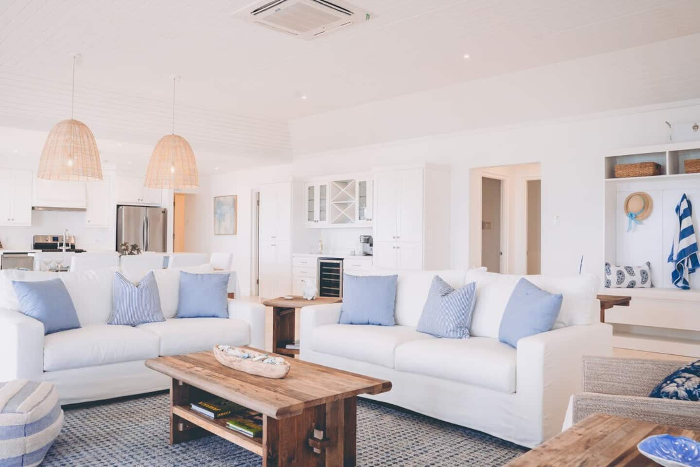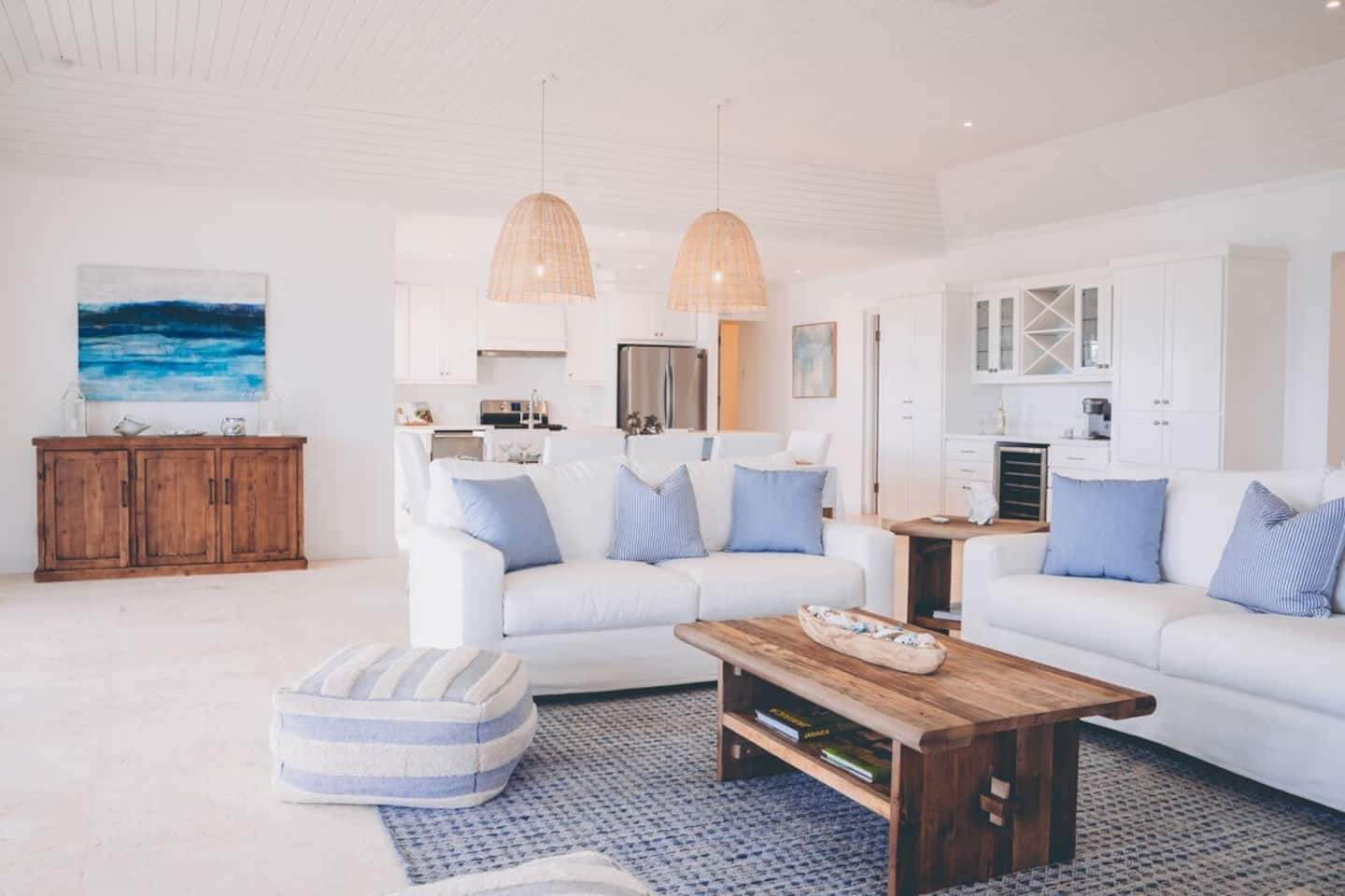 Absolute BEACHFRONT villa, Queens Cottage in Silver Sands is a newly renovated villa with fresh and chic coastal interiors decor.