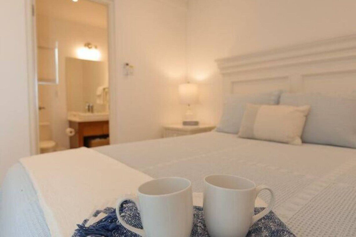 In the kitchen, there is kitchen island that seats 4 persons. Outfitted with the most updated fridge/freezer combo, a 6 burner gas stove and oven, an exhaust fan, a dishwasher and a ceiling fan. In the kitchen, there is a window with a roman shade above the sink overlooking the ocean. A French door that leads outside onto the patio and straight to a second dining table which seats 8 persons. A wonderful choice for your indoor and outdoor dining areas at Queens Cottage. A barbecue grill(Weber grill and a mini bar) in the same area as the outdoor dining table.