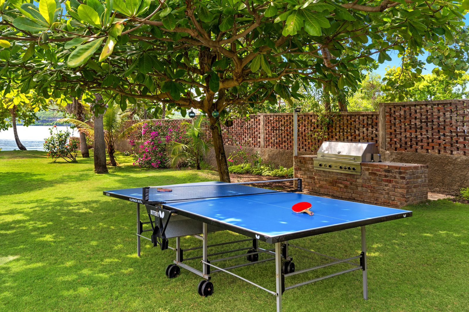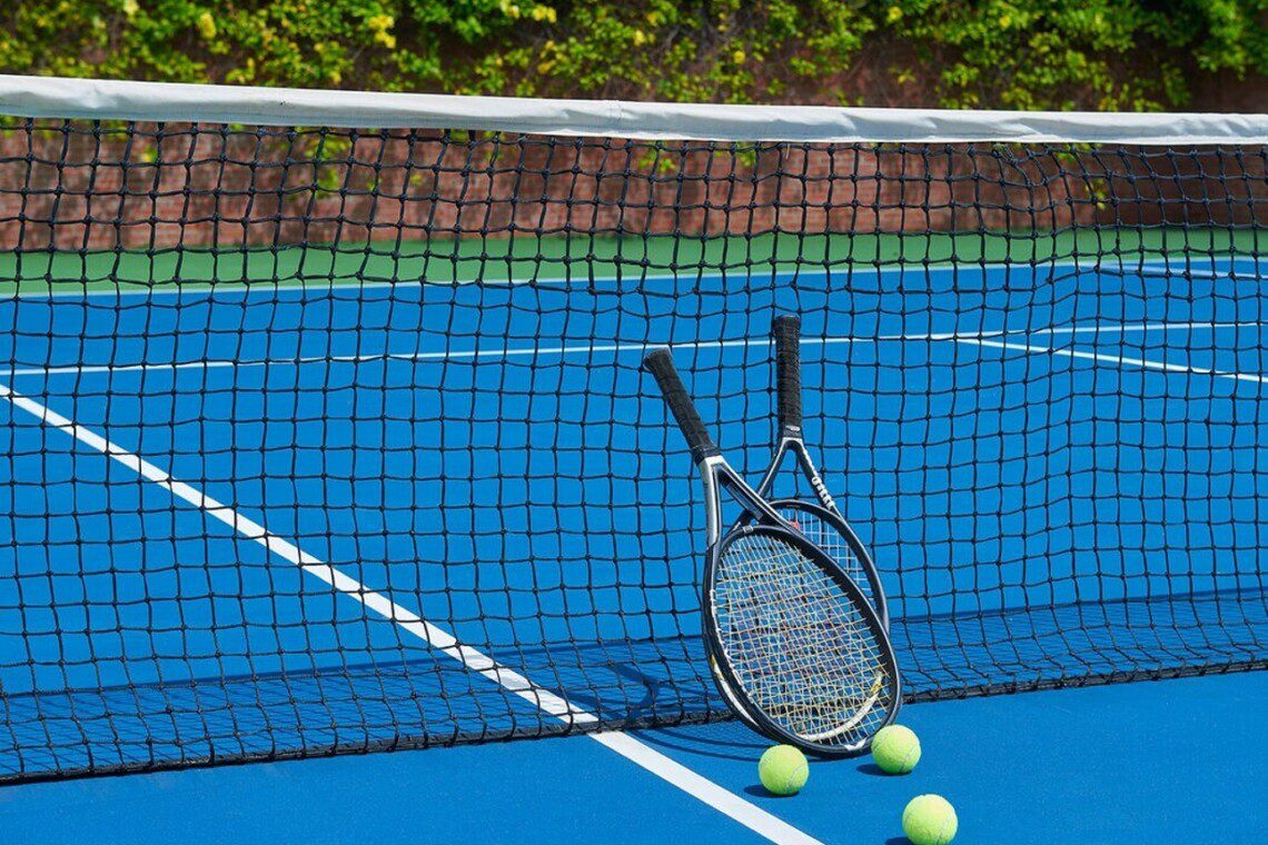 Volleyball, badminton, scooters, two paddle boards, and a basketball court (on a tennis court)