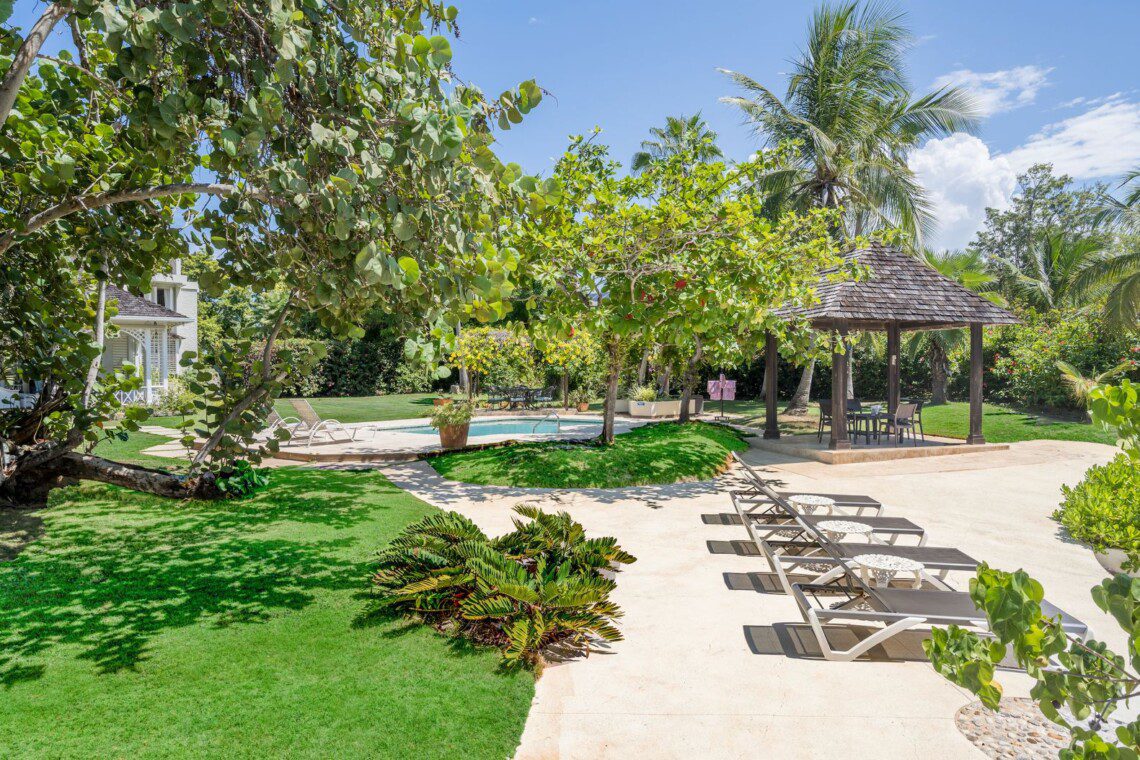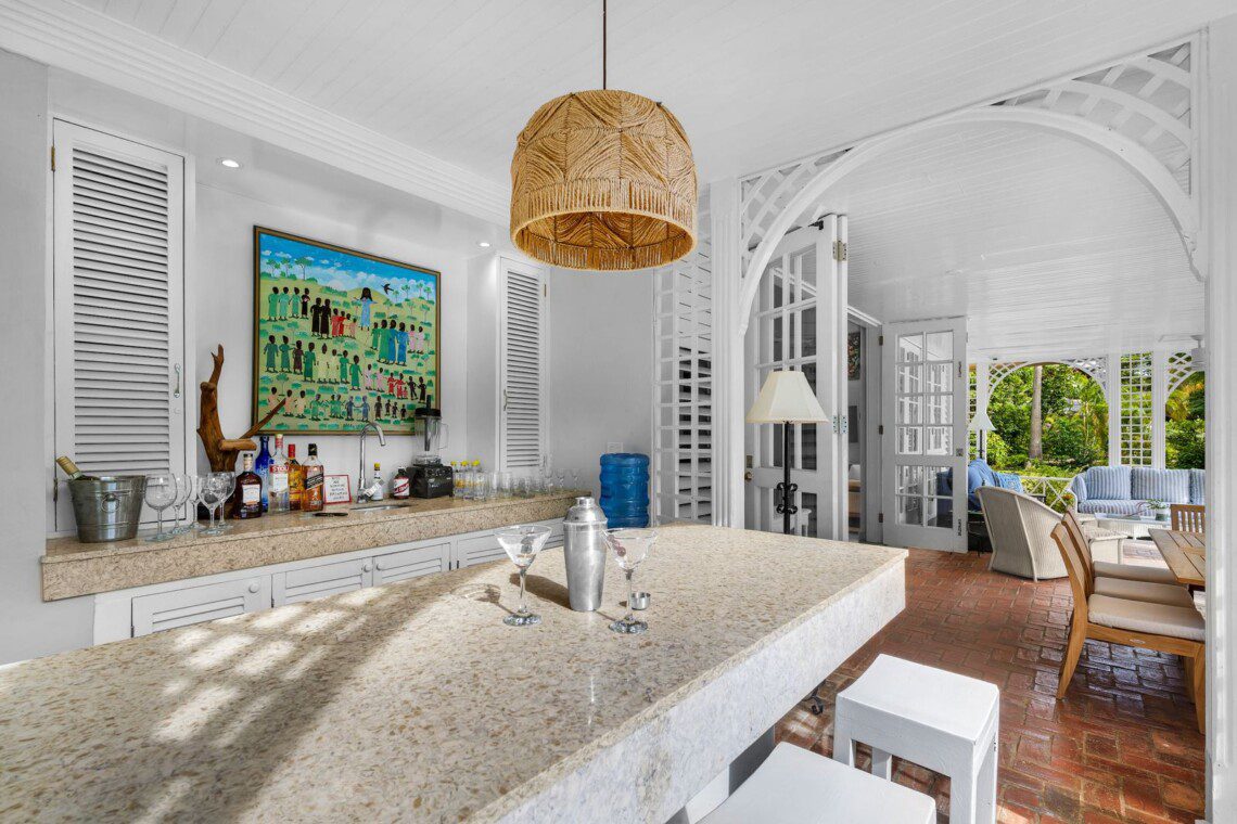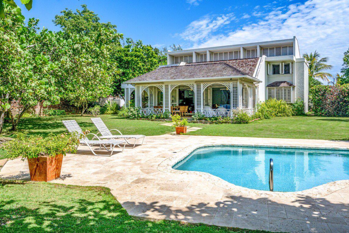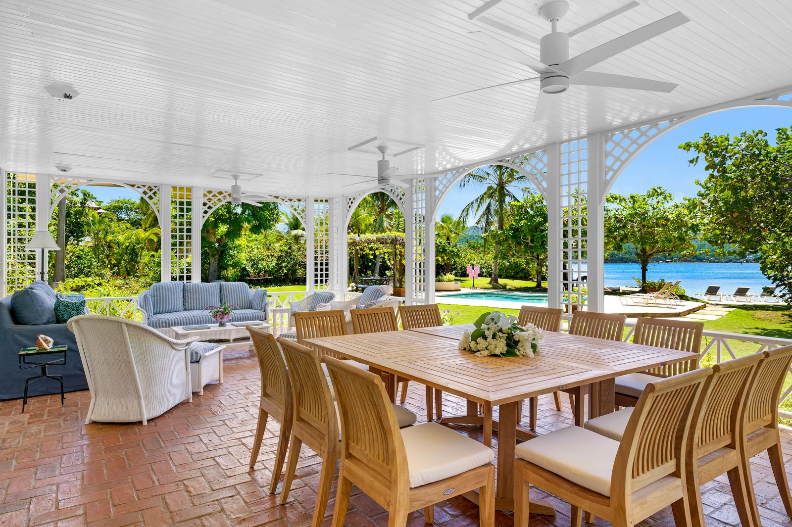On its own sugary white sand beach lapped by the clear turquoise waters of Discovery Bay sits the charming home Sea Grapes. The translucent azure waters here are excellent for swimming and kayaking. Surrounding the swimming pool is a spacious, grassy lawn, wonderful for children and games. Behind the house is the private tennis court, which can be lighted for night play.