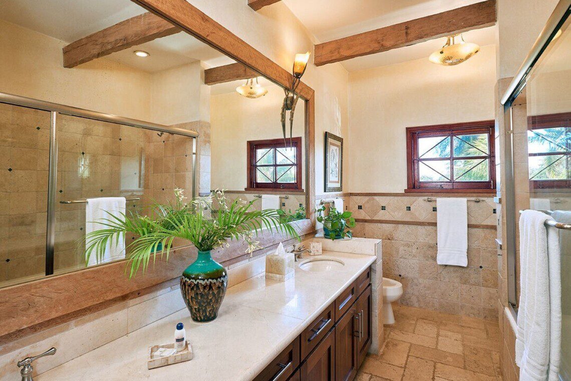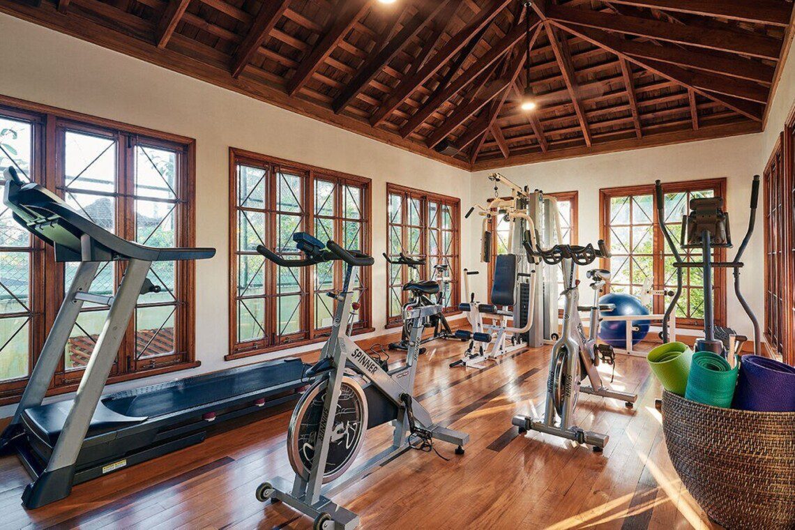 Whispering Waters is a new beachfront luxurious villa, 7 bedrooms, all air-conditioned, fully staffed, tennis court, Jacuzzi and private swimming pool! Fully air-conditioned fitness gym!