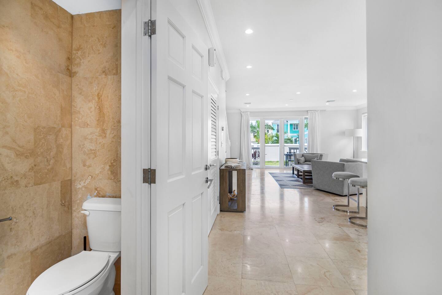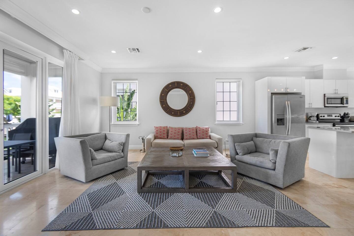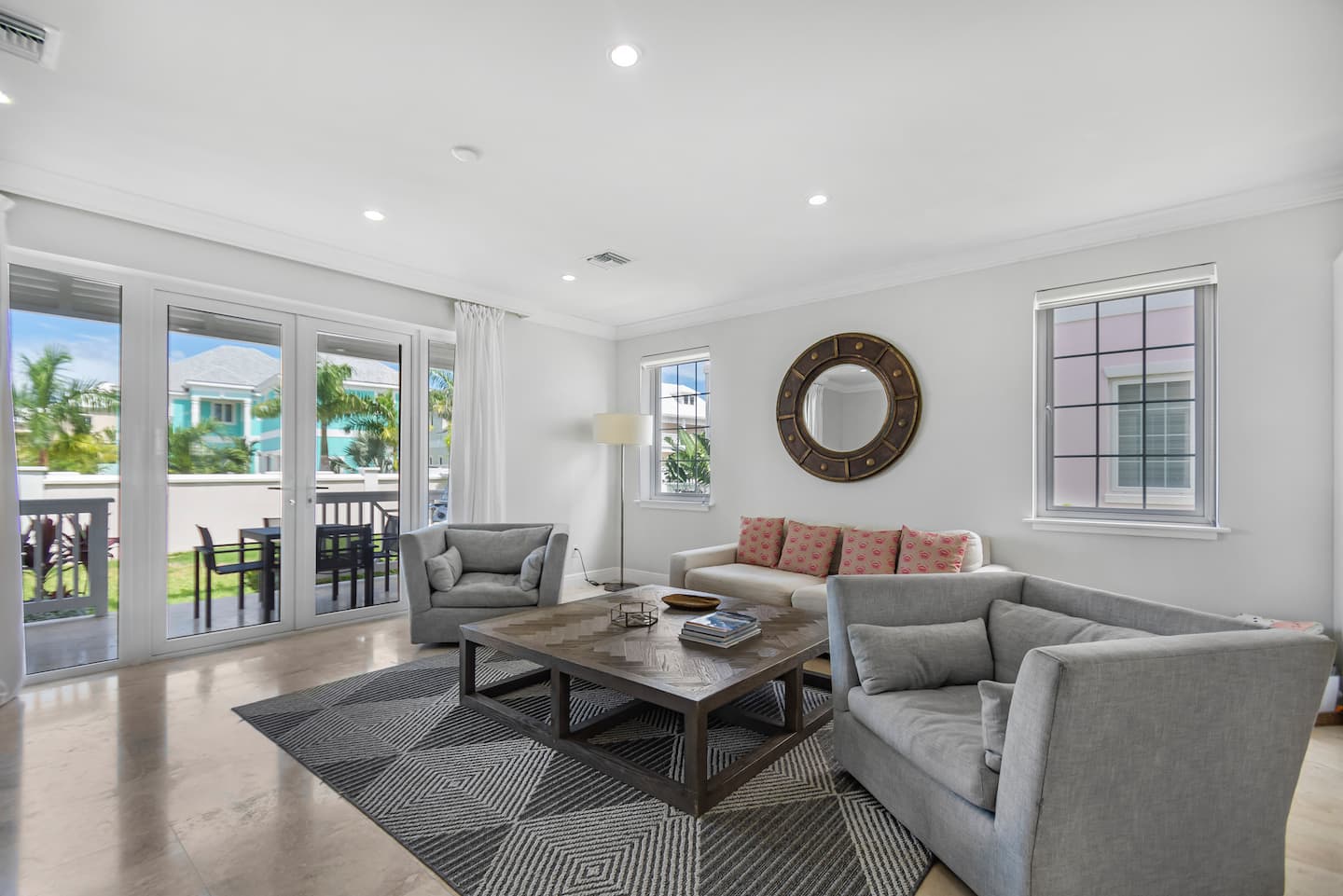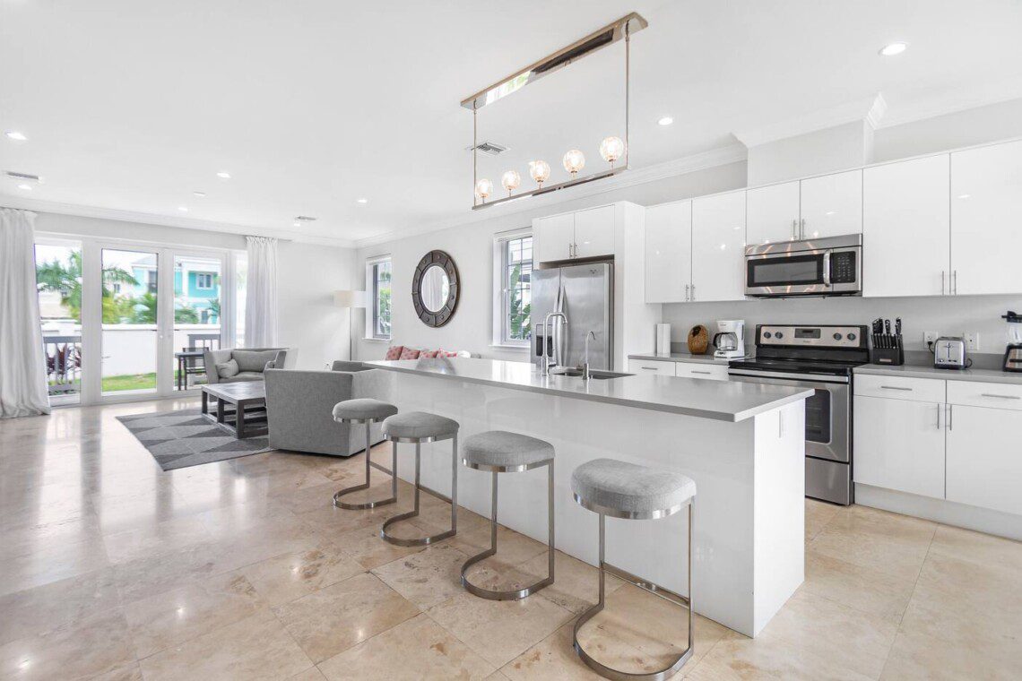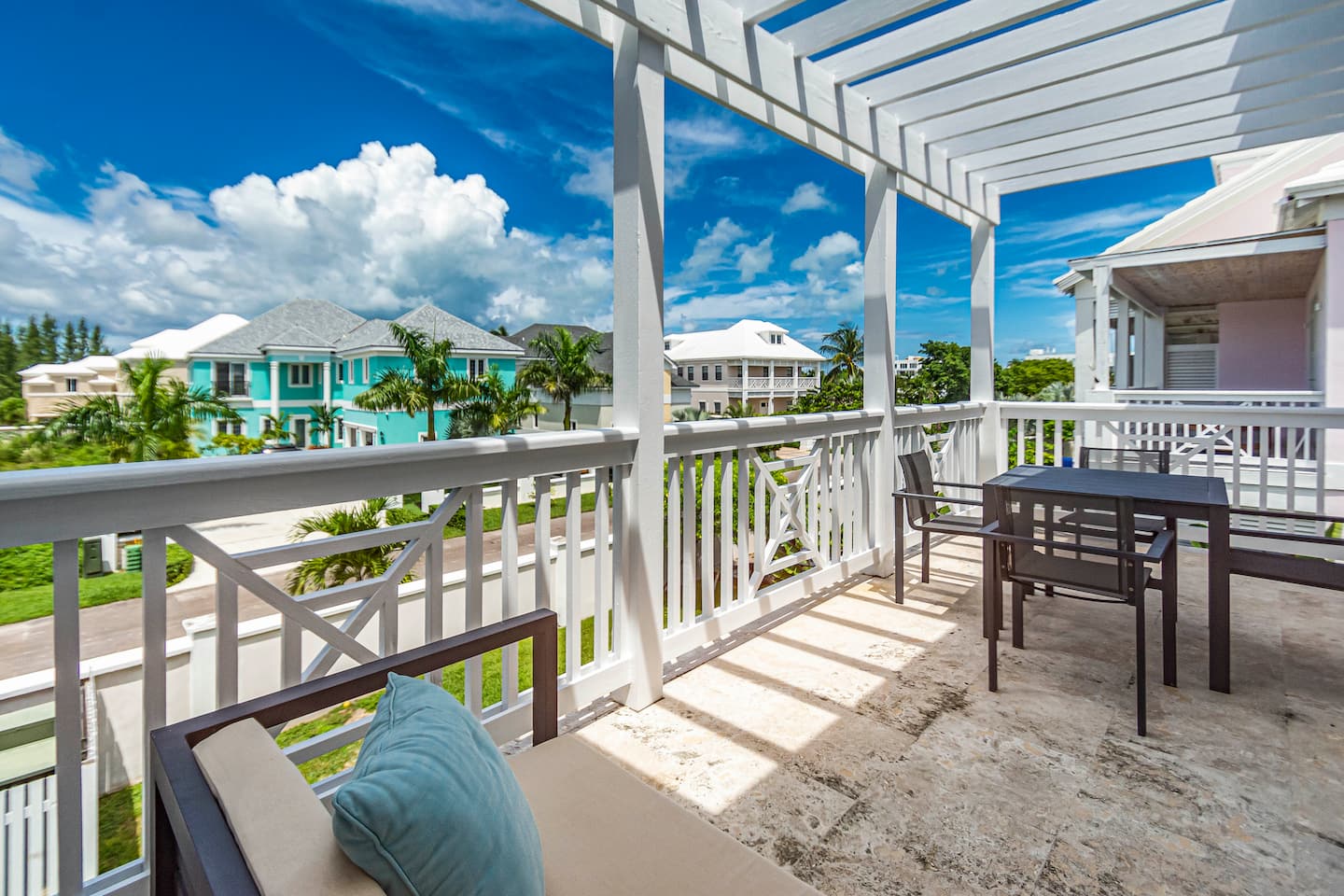 The Sandpiper Villa is an ocean view townhouse just 60 steps to the beach in a gated and child-friendly community located in New Providence, The Bahamas. The community offers tennis courts, golf pitching green, children’s playground and pools. The luxurious townhouse style villa has three beautiful bedrooms with 2.5 bathrooms on two floors and will sleep six. The comfortable villa provides the perfect destination for the vacation of a lifetime!